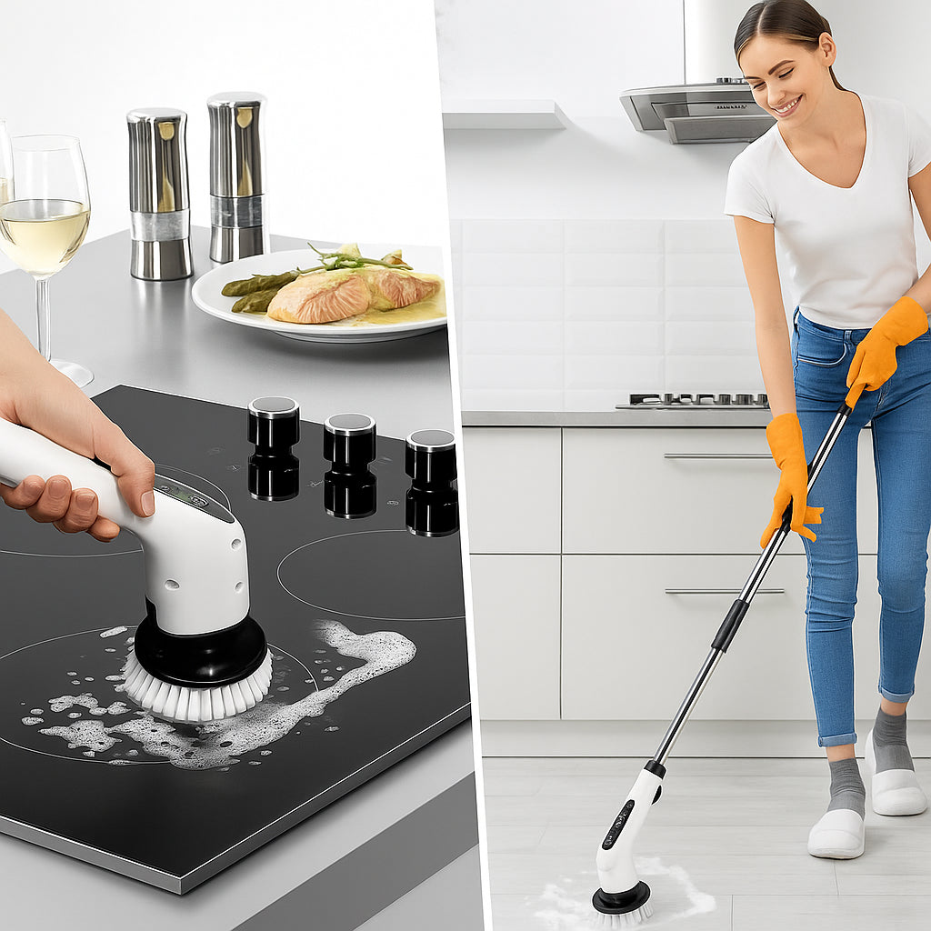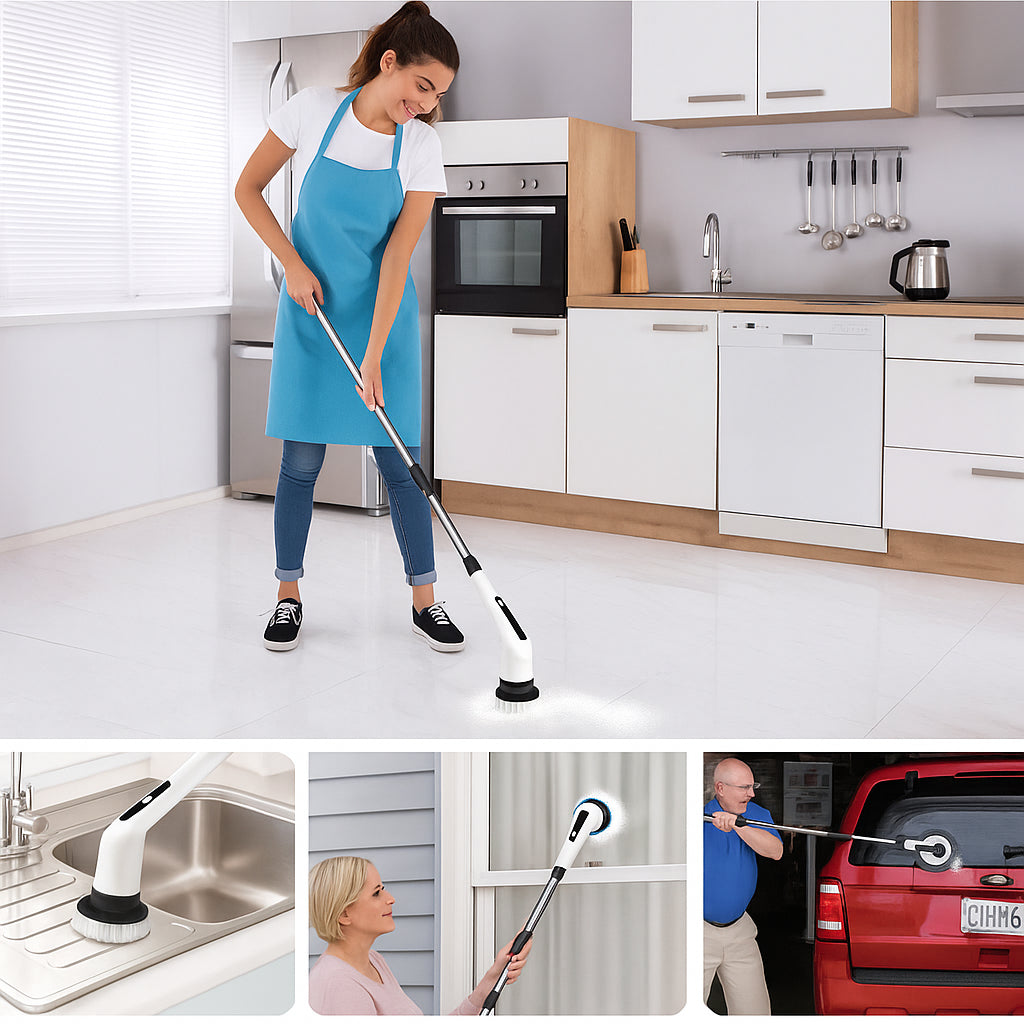 Conoce el aliado ideal para dejar tu hogar impecable, sin dolor, esfuerzo ni productos caros. El Cepillo Giratorio Eléctrico 9 en 1 es más que un cepillo: ¡es tu nuevo asistente de limpieza!